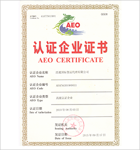 AEO認證企業證書