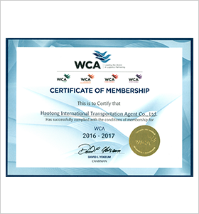 WCA會員認證證書